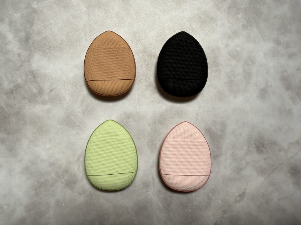 最近トレンドになりつつある卵型スポンジも手ひらに収まりやすいサイズと形で使いやすいです。