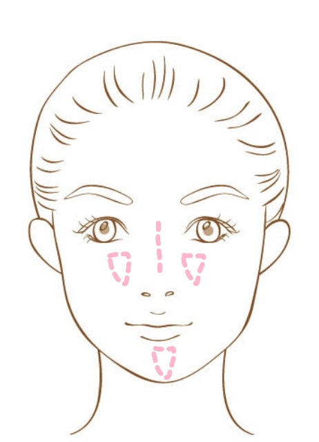 あご先と目の下にも縦長になるように入れます。