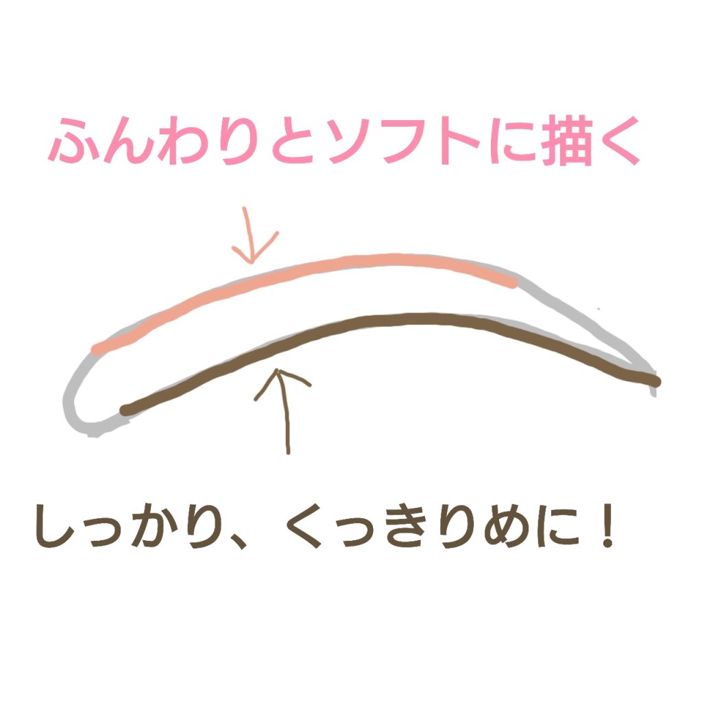 下側だけしっかりと描き上側はソフトに仕上げると上品でナチュラルな眉に仕上がります。